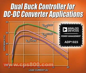 ADP1823減少了降壓式控制器通常對大電容器和大電感器的需求,從而其總系統BOM成本比同類器件降低15%。ADP1823可提供兩個相位相差180度的獨立輸出通道,以減小對輸入電容器的壓力。該芯片工作在300kHz或600kHz的引腳可選頻率或者與外部300kHz~1MHz的時鐘同步。它為設計工程師提供從3V~20V輸入電壓產生兩路獨立的輸出電壓的靈活性。其中每一個降壓式控制器可配置為提供0.6V到85%輸入電壓的輸出電壓,并且能驅動負載端穩壓器的大功率MOSFET管。