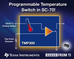日前,德州儀器 (TI) 宣布推出采用業界最小封裝SC70、工作電源電壓范圍最大的低功耗電阻可編程溫度開關 —— TMP300。該器件允許簡便的溫度監測和控制,微小型封裝使其成為電源系統、DC/DC 模塊、熱監控與電子防護系統的理想選擇。