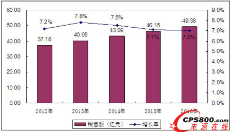 ICTresearch依據中國UPS市場銷售額的歷史統計數據,分析其數據特征,選擇合適的數學模型,對UPS未來五年的銷售額預測如下。